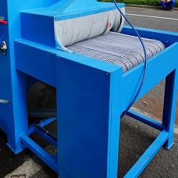 Das Kafan-Förderband-Sandstrahlsystem ist ein Durchlaufsystem mit einer Reihe von vorpositionierten automatischen Pistolen, die Teile in linearer Bewegung abfegen, synchronisiert mit der kontinuierlichen Bewegung des Förderbands.